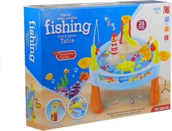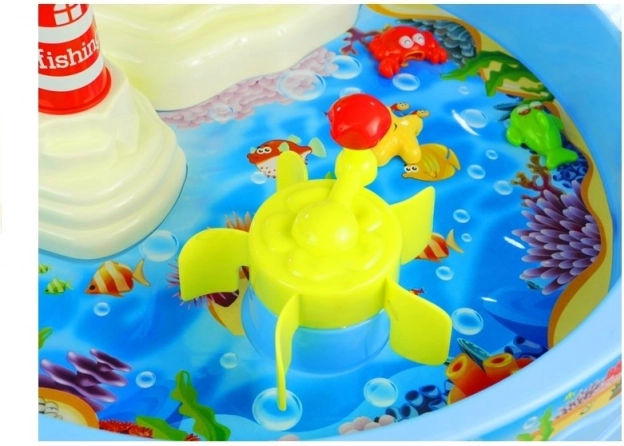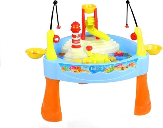 Oplev en verden af vandleg, hvor børn med magnetiske stænger fanger fisk, krabber og andre havdyr. Når fyrtårnet trykkes ned, tændes lysene og en munter melodi starter, og vandstrømmen driver vandmøllen og skaber et vandfald. Legen er intuitiv og egner sig også til mindre børn – kan spilles alene eller som konkurrence med venner eller forældre.