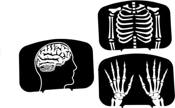 Røntgenkort af hoved, brystkasse og hænder vækker nysgerrighed og hjælper børn med at forstå grundlæggende anatomi gennem leg.