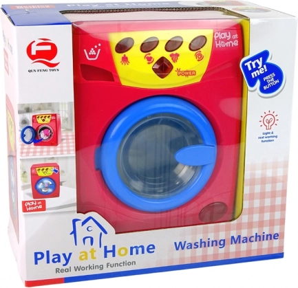 Realistisk børnevaskemaskine til kreativ leg derhjemme. Byder på lys- og lydeffekter, åbnelåge og programmer til vask, skyl og centrifugering. Sjovt og sikkert legetøj for børn fra 3 år, som udvikler motorik og fantasi.