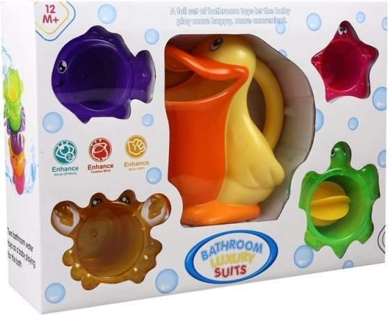 En badelegetøjs-sæt, der glæder både børn og forældre. Pelikanen med praktisk håndtag opsamler og hælder vand, mens de fire farverige dyrekopper kan bruges til at øse, hælde og stable. Takket være sikker plast, glatte kanter og et legende design er sættet perfekt til daglig vandleg.
