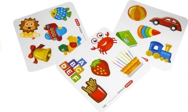 Kort med billeder af dyr og genstande hjælper børn med at genkende forskellige former og udvikler deres visuelle hukommelse.