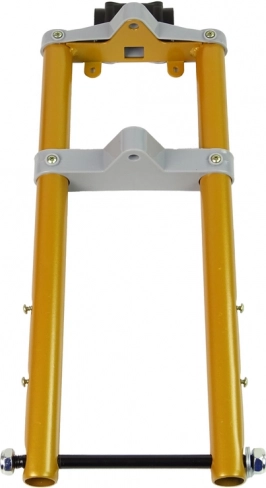 Denne forgaffel med aksel er beregnet til børnemodellen APRILIA A007. Den tilbyder solid fastgørelse af forhjulet og pålidelig dæmpning af stød, hvilket øger komfort og stabilitet under kørsel. Takket være de præcise mål er udskiftning hurtig og ukompliceret.
