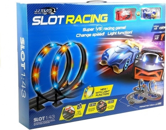 Racer-slotbanesæt med LED-loop 1:43, 2 biler