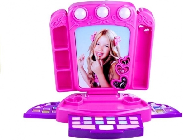 Dette børne-toiletbord stimulerer fantasi og finmotorik. Takket være det oplyste spejl kan børn føle sig som i et ægte makeuphjørne, mens de ordentlige rum holder alle småting på plads. Sundhedsmæssigt ufarlige materialer og afrundede kanter sikrer sikker brug.