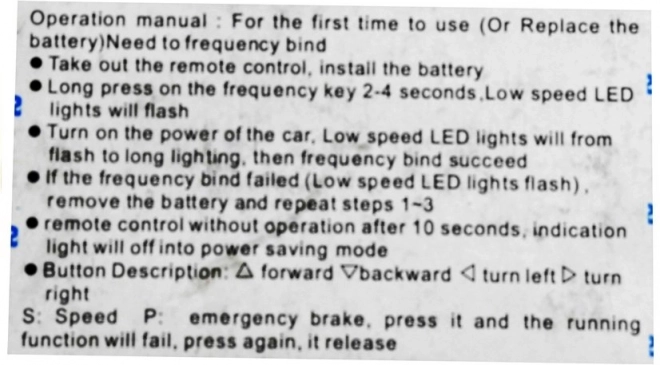 Fjernbetjeningen TX1 2.4G er ideel til forældrekontrol af et børnekøretøj. Med funktionen P (park) kan du stoppe bilen med det samme, med knappen S vælger du hastighed, og via knappen Frequency parres fjernbetjeningen hurtigt med bilen.