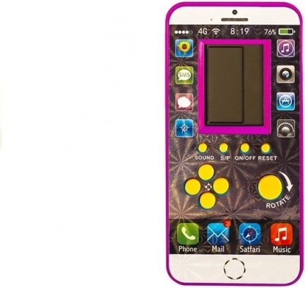Elektronisk spil inspireret af en smartphone, der begejstrer børn med sit design og sin enkelhed. Hvidt kabinet med lyserødt accent, blankt print og ikoner omkring skærmen, der minder om galleri, SMS, kamera og afspiller, giver følelsen af en rigtig telefon. Gule knapper sikrer nem betjening – tænd/sluk, reset, melodier og navigation under spillet.