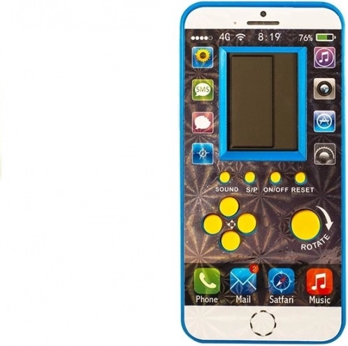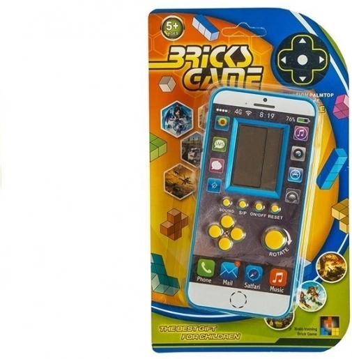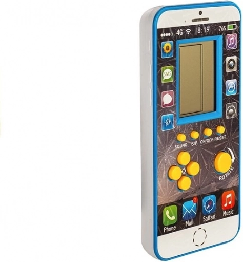 Det præsenterede elektroniske spil ligner en mobiltelefon. Det hvide kabinet med blå accenter passer perfekt til den blanke forsideprint på produktet. Rundt om displayet er der ikoner, der minder om dem, barnet kender fra forældrenes telefoner – galleri, SMS, kamera eller musikafspiller. Barnet vil derfor føle, at det har sin egen mobiltelefon. Under dem findes gule knapper til spilfunktionerne. Med dem kan du tænde og slukke spillet, nulstille legetøjet eller tænde melodien. De øvrige knapper bruges til at navigere i det valgte spil. Lommeversionen af legetøjet rummer en række forskellige spil, herunder Tetris, Snake og Tanks, så den gør ventetiden i bussen eller frikvarteret i skolen sjovere for dit barn.