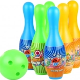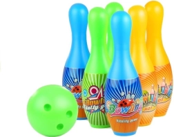 Bowling-sæt til børn er fremstillet af holdbar plast, hvilket sikrer sikker leg både derhjemme og udendørs. Det er kendetegnet ved livlige farver, der tiltrækker opmærksomhed og opmuntrer til aktiv leg.