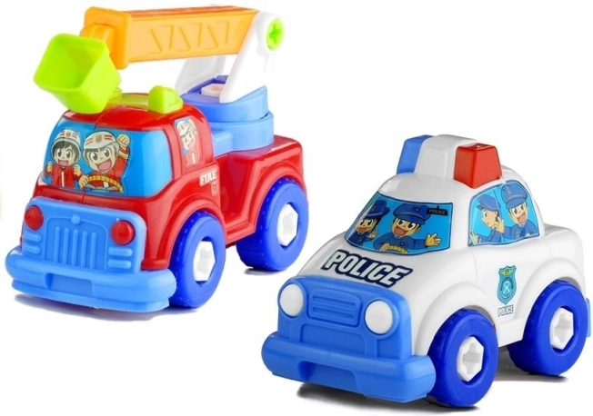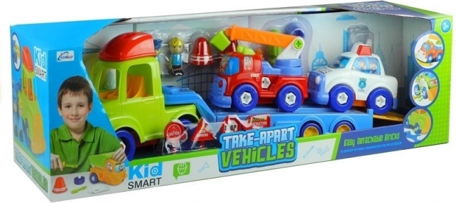 Dette farverige køretøjssæt, som gør det muligt at skille ad og samle igen, stimulerer børns kreativitet og motoriske færdigheder. Det indeholder en transporter, en politibil og en brandbil, som nemt kan skrues fra hinanden med plastværktøj. Dette interaktive legetøj kombinerer muligheder for fælles leg med forældre eller søskende samt selvstændig leg.