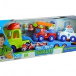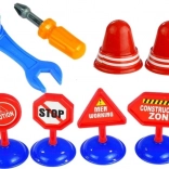 Sættet indeholder figurer, værktøj og trafikskilte, som lærer børn om reparationsverdenen og grundlæggende værktøj gennem leg.