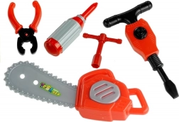 Der medfølger også arbejdsværktøj med udskiftelige bits og en børn sav, så de små håndværkere kan spænde skruer og ændre detaljer. Alt er lavet af let, holdbart og sikkert plast, egnet til børn fra 3 år. Sættet leveres i en gaveæske med vindue og hank – ideelt som en fantastisk gave.