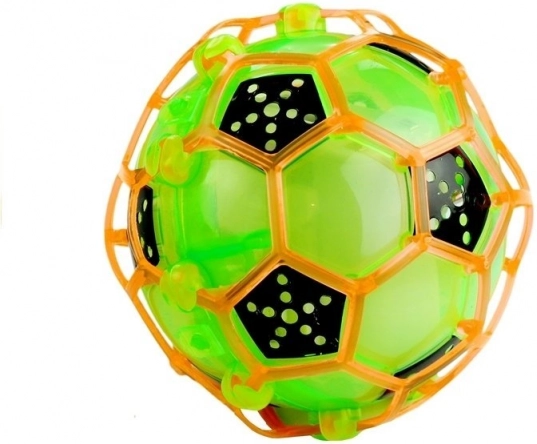 Denne sjove og lette bold ligner en fodbold, skjult i et fleksibelt plastgitter. Når den aktiveres, lyser den i farver, afspiller muntre lyde og begynder at hoppe uforudsigeligt til siderne – som om den danser. Børn får masser af bevægelse, træner reaktionsevne og koordination, og legen er samtidig skånsom mod møbler og gulve.