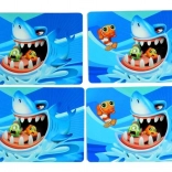 Træk fisk efter kortene og lad dig ikke fange – hajen kan klappe i når som helst! Et hurtigt og sjovt spil for både børn og voksne, der træner opmærksomhed og finmotorik.