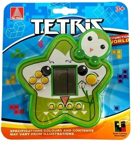 Spillet med elektronisk grøn konstruktion er meget let og kompakt, hvilket gør det til en ideel lommeversion, du kan have med overalt. Det består af en skærm og gule knapper, som styrer spillets funktioner. Du kan tænde og slukke spillet, slå lyde fra eller nulstille spillefladen, så du kan begynde at stable blokke forfra. De øvrige knapper bruges til navigation under spillet og til at dreje blokkene. Denne lommeudgave i grøn af det elektroniske spil gør tiden hyggelig for både børn og voksne. Perfekt til en pause mellem timerne, i bussen eller derhjemme under afslapning.