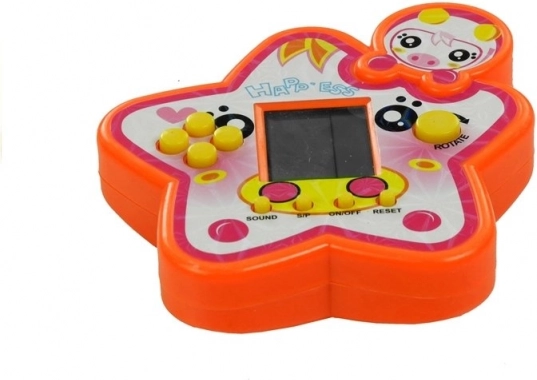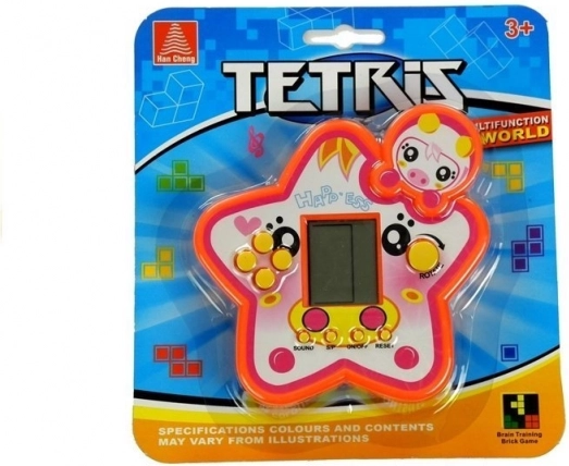 Det elektroniske spil i orange etui er meget let og takket være de kompakte mål ideelt til at tage med. Det har en skærm og gule knapper til styring af spilets funktioner. Knapperne gør det muligt at starte og slukke spillet, dæmpe lyde og nulstille banen for en ny start. Yderligere knapper bruges til navigation under spillet og til at rotere blokke. Lommeversionen af det elektroniske spil er den ideelle ledsager i fritiden, uanset om du er i bussen, derhjemme eller i en pause mellem gøremål.