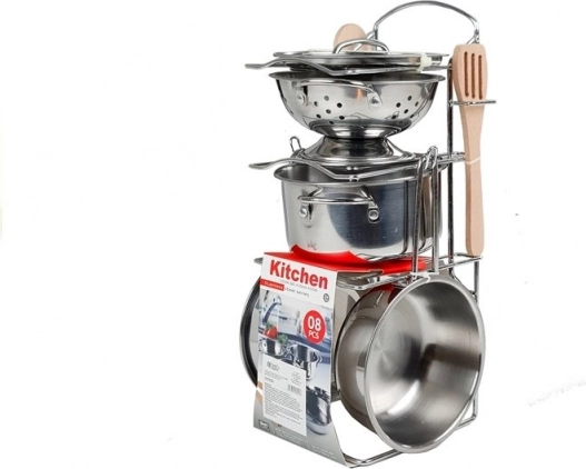 Dette sæt rustfrit stålkøkkenudstyr er det perfekte supplement til små kokke. Det indeholder et bredt udvalg af komponenter, der tilbyder utallige muligheder for at lege madlavning af lækre retter og servering. Med realistisk udseende og komfortable størrelser er sættet ideelt for børns mindre hænder.
