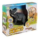 Lær den perfekte model af den store Triceratops at kende, som levede for 125–100 millioner år siden. Denne model er designet med en markant kranieform og en massiv, muskuløs bygning. Drevet af tre "AA" 1,5 V batterier begynder dinosauren, når den tændes, at gå, brøle og bevæge hovedet, hvilket giver en realistisk oplevelse takket være lyseffekter som blinkende øjne.