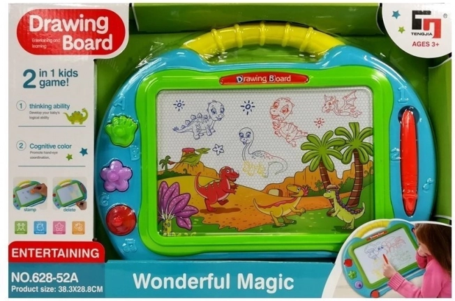 Sjov og lærerig magnetisk tavle til børn med stor tegneflade, stylus og 3 stempler. Skab multifarvede billeder, slet nemt, og styrk kreativitet og finmotorik. Med bærehåndtag er tavlen let at transportere og egner sig til både piger og drenge.