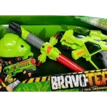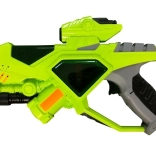 Pistolen drives af to 1,5V “AA”-batterier, sværdet drives også af to 1,5V “AA”-batterier, som ikke medfølger. Alle dele af rum sættet er fremstillet af materiale af høj kvalitet, nærmere bestemt plast. Legetøjet har CE-certifikat, er pakket i en stor papkasse med udstillingsvindue og kan være en fantastisk gaveidé til drenge.