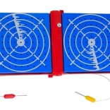 To spillebrætter, begge flåder samt markører for træffere og missere. Alt opbevaret i en praktisk kuffert for nem opbevaring og rejse.