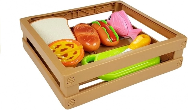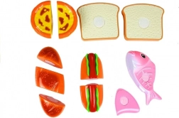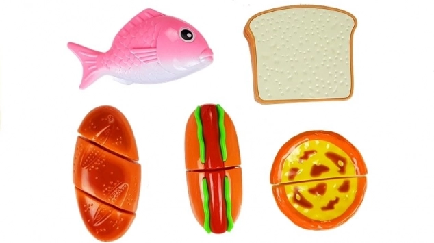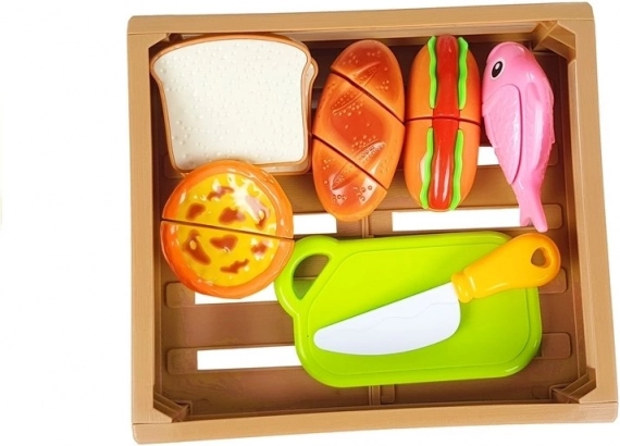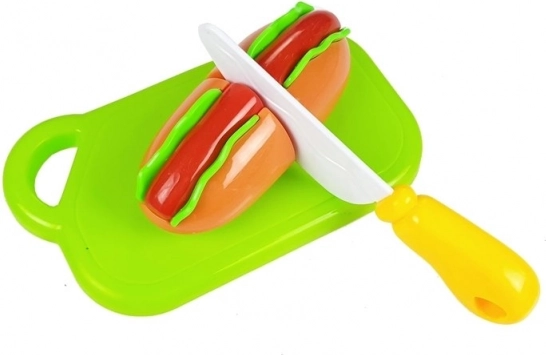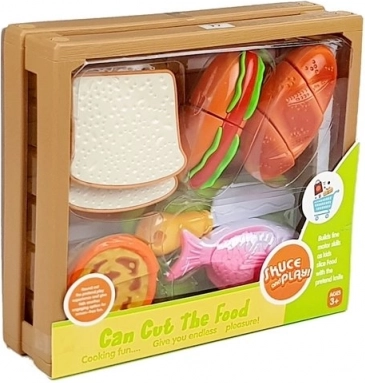 Oplev den sjove verden af madlavning med et børnesæt, hvor hver del holdes sammen af velcro. Børn kan lave en hotdog, servere en fisk, skære brød eller “bage” en cupcake. Den sikre plastkniv og skærebrættet muliggør realistisk, men helt sikker skæring.