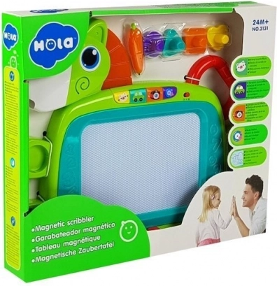 Opdag en sjov magnettavle, der lader børn tegne og slette igen og igen. Den store flerfarvede skærm, fire muntre lydknapper og et sæt stempler forvandler hver idé til et originalt billede. Med det behagelige håndtag kan barnet tage sin tegnetavle med overalt.