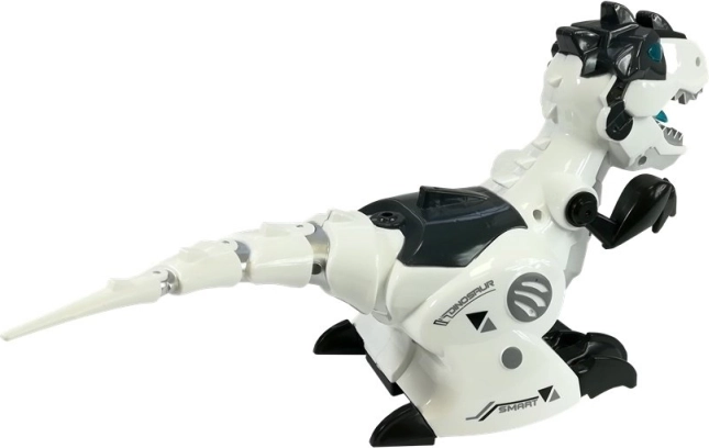 Udforsk dinosaurernes spændende verden med en mekanisk T‑Rex med fjernbetjening. Dinosauren har markante lysende elementer og udsender realistiske lyde, som forstærker legeoplevelsen. Takket være den robuste konstruktion og den moderne kombination af hvid, sort og grå fremstår den som en ægte futuristisk skabning.