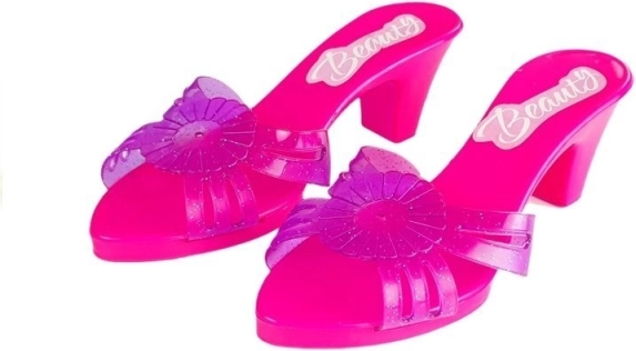 Letvægts sandaler i plast med blomsterpynt giver ekstra flair til enhver leg og støtter rolleleg som prinsesser.