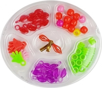 Farvede perler i en praktisk organizer gør det muligt at lave egne armbånd og halskæder.