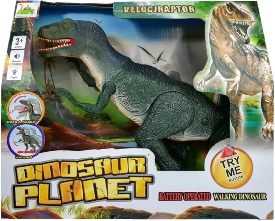 Denne detaljerede velociraptor med kraftig, muskuløs bygning og realistisk tekstur vil glæde små dinosaurelskere. Takket være strøm fra AA-batterier begynder den at gå efter tænding, udsender en brølen, og dens øjne lyser, hvilket forstærker den autentiske legeoplevelse.