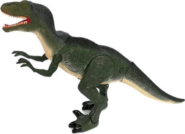 Efter tænding tager velociraptoren skridt ledsaget af en kraftig brølen. En fed effekt for realistisk leg derhjemme eller på udstilling.