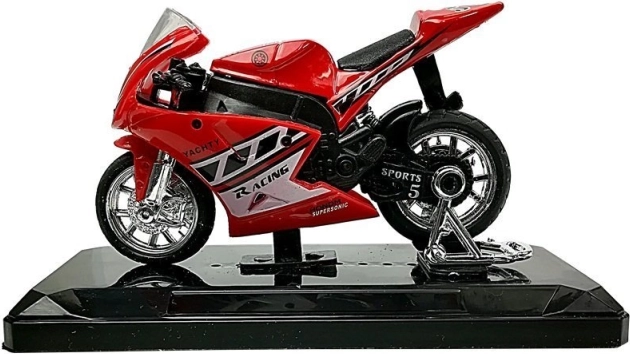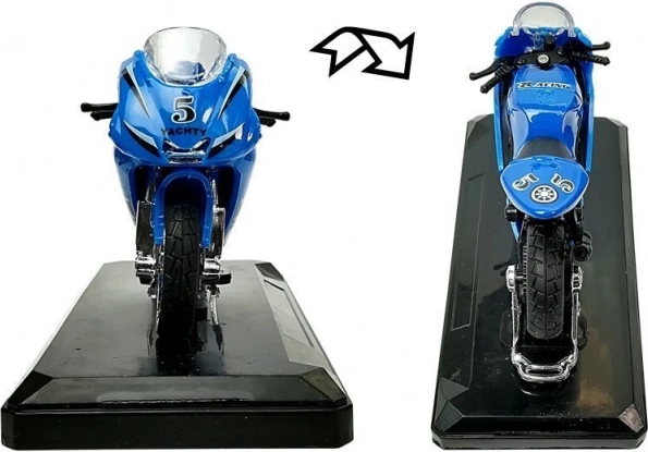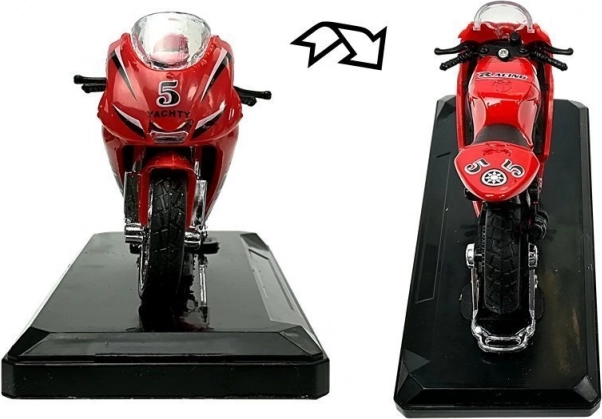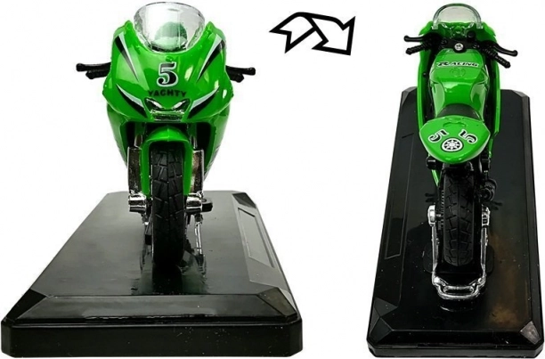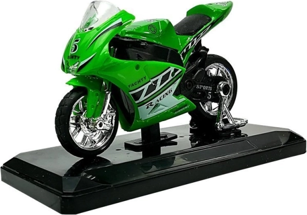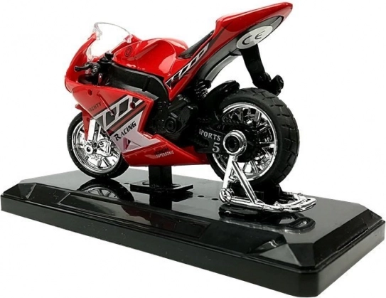 Sportsmotorcykel med lyde 1:18 – metalmodel på sokkel