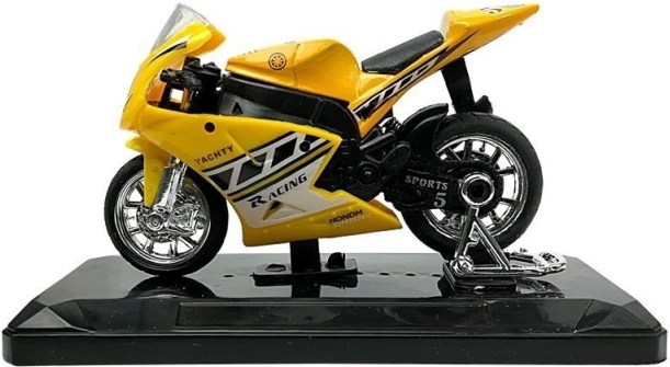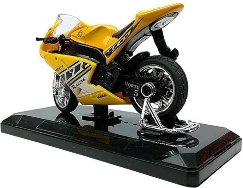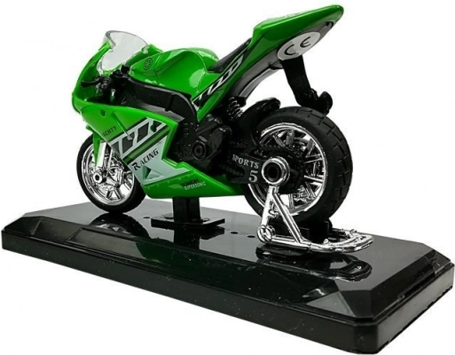 Den realistisk udførte sportsmotorcykel i målestok 1:18 kombinerer metal og plast for lang holdbarhed og flot udseende. Detaljeret design med forkromede hjul og racerklistermærker gør den til et attraktivt supplement til både børneværelset og modelsamlingen.