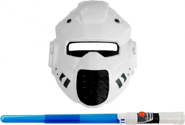 Det kosmiske kampsæt består af en pistol og et teleskopisk sværd. Farveskemaet for disse forsvarsredskaber består af klare, afdæmpede farver kombineret med intens rød og koralfarvet nuance. Masken i sættet er designet i et hvid-gråt farveskema, har rektangulær øjenåbning, åbninger ved munden og en elastisk rem bagpå, der sikrer, at masken bliver siddende under legen.
