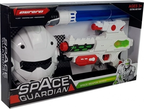 Vi præsenterer et fantastisk sæt rumvåben, som er den perfekte rekvisit til kampen mod en truende fjende fra en fjern planet. Dette unikke, originale våben har kosmiske lyde og lys, hvilket helt sikkert vil opmuntre alle børn til at lege.