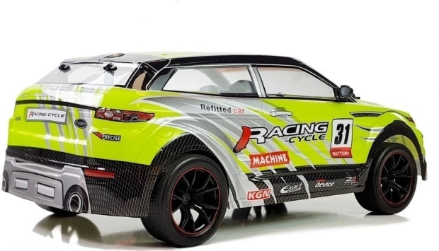 Stilfuld grøn RC-bil inspireret af racerspecials bringer masser af action selv på mindre områder. Skala 1:10 forstærker det realistiske look, mens en controller på 2,4 GHz minimerer interferens og muliggør kørsel med flere biler på samme tid. Det robuste PVC-karrosseri tåler stød og lave temperaturer, og gummihjul sørger for godt greb på forskellige underlag.