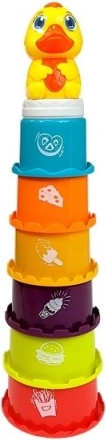 Læringspyramiden er ideel til at udvikle dit barns færdigheder. Med seks farverige kopper og en lille and på toppen bliver hvert øjeblik en leg, der giver mulighed for at styrke motorik og koordination. Den kan bruges hjemme, på stranden eller i badeværelset. Klodserne har forskellige markeringer, der støtter kendskab til fødevarer og former. Opdag de mange måder, denne legetøj kan stimulere barnets udvikling på.