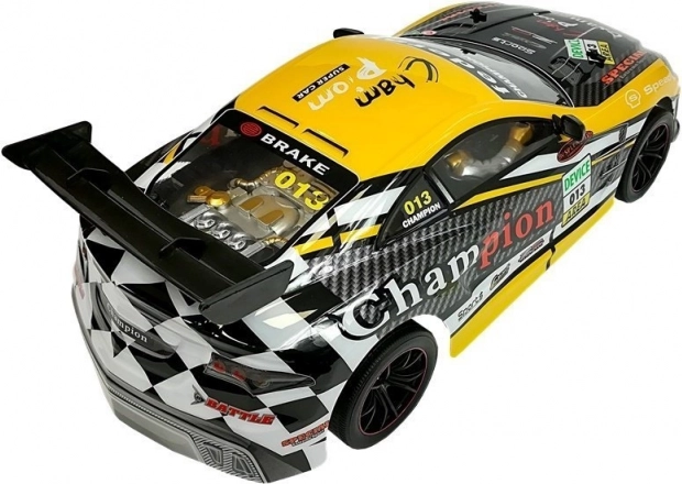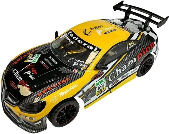Stilfuld racerkarrosse med markante decals og aerodynamisk spoiler vil glæde enhver fan af hurtige biler. Den åbne motorstil og de præcise detaljer understreger det realistiske udtryk, mens modellen forbliver robust og egnet til daglig sjov.