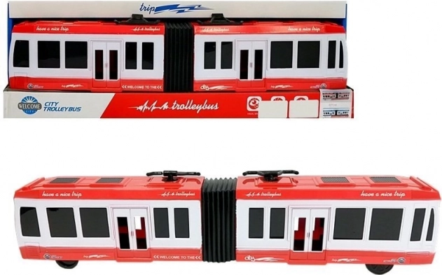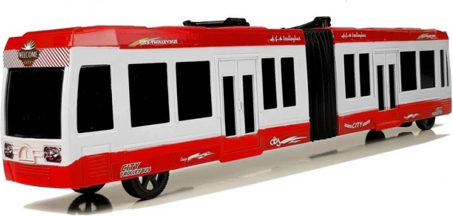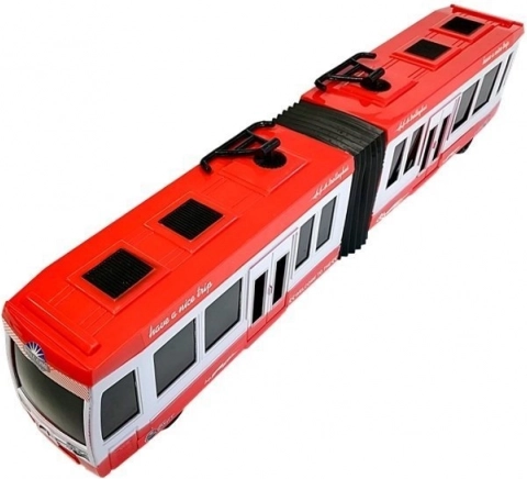 En realistisk ledbus i rød farve, der glæder både små chauffører og samlere. Takket være friktionsmotoren er det nok at trække den tilbage og slippe – bussen kører selv fremad. Gummidæk og midterled sikrer glatte sving og nem manøvrering. Ideel legetøj til at udvikle børns motorik, koordinering og logiske tænkning.