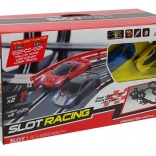 Mød den perfekte racerbane til små racerkørere! Dette storslåede slot-car sæt er udstyret med en specialbase med føringsskinner, som de medfølgende racerbiler kører på.
