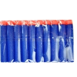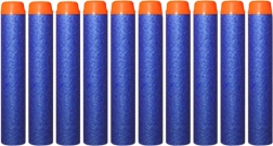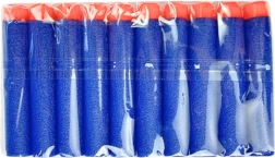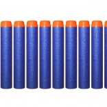 Sæt med 10 bløde skumkugler til børnepistoler, som garanterer masser af sjov. Kuglerne har en gummispids og er fremstillet i mørkeblå med orange ender.