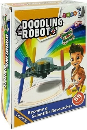 Byg din egen tegnerobot! Denne DIY uddannelses tegnerobot bruger vibrationer og motorrotation til at skabe kunstværker. Ideel til børn fra 8 år, der er interesserede i robotteknik.