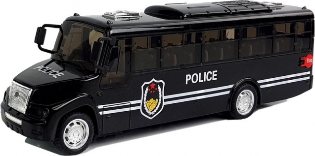 Denne stilfulde politibus lader børn leve sig ind i rollen som chauffør og køre ud på udrykning eller træning. Det sorte design med POLICE-tryk og karakteristiske dekaler fanger opmærksomheden ved første øjekast, og det detaljerede interiør giver en mere realistisk legeoplevelse. Takket være friktionsdriften er det nok at trække bussen tilbage og slippe – køretøjet kører selv fremad.