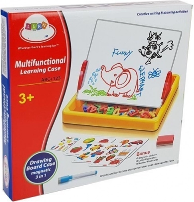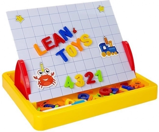 Denne magnetiske tegnetavle er et fremragende valg til både førskolebørn og skolebørn. Børn kan øve sig i at skrive, tegne og sætte ord og enkle regnestykker sammen takket være den farverige samling af magnetiske elementer. Den stabile, udfoldelige konstruktion gør den nem at bruge både på bordet og på gulvet.