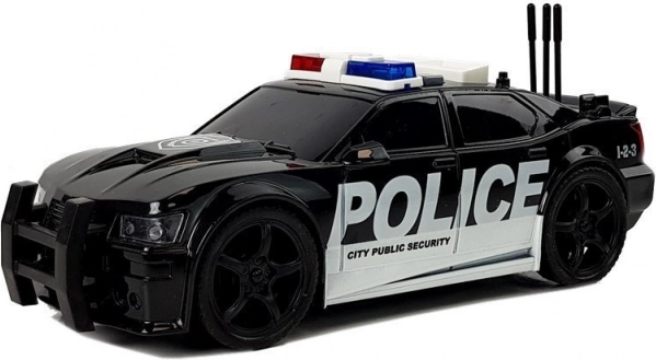 Det stilfulde politibil i klassisk sort med markante påskrifter giver en autentisk legeoplevelse. Toned for- og sideruder giver modellen et strejf af mystik og understreger det sporty look. Takket være skalaen 1:20 er de karakteristiske detaljer gengivet troværdigt, hvilket øger realismen under legen.