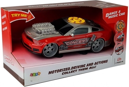 Sjov bil for små elskere af musik og biler. På taget har den et betjeningspanel og imitation af højttalere, på motorhjelmen en model af motor med lyseffekter. Ved at trykke på knapperne starter den musik, lyseffekter og lyde af start og acceleration. Takket være funktionerne kørsel frem/tilbage og det sporty design er det en perfekt gave til børn fra 3 år.