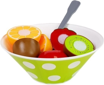 Sættet indeholder forskellige slags plastikfrugter og grøntsager, der kan nemt skilles ad og samles igen, hvilket understøtter udviklingen af motoriske færdigheder.