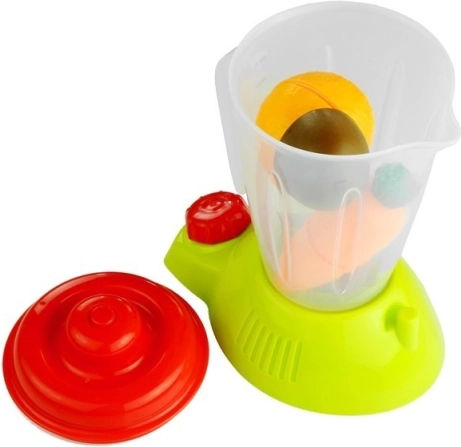 Sættet indeholder et bredt udvalg af elementer fra mixeren med hastighedsknap, over forskellige plastikfrugter og grøntsager, til sugerørskopper og køkkentilbehør. Gennem leg vil børn lære om fødevarer som græskar, majs, appelsin og kiwi.