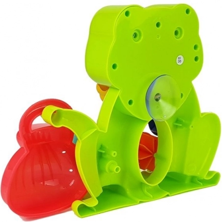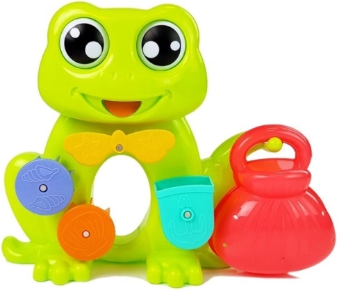 Den søde frø med roterende elementer tiltrækker børn til leg i badet. Når der hældes vand i dens hoved, aktiveres et lille vandhjul, som sætter gang i vandstrømmen ud af frøens mund. Derudover har frøen øjne, der drejer ved vandgennemstrømning, hvilket fanger og underholder ethvert barn.<2137>