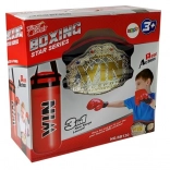 Sejren i træningen eller i en sjov kamp bliver sødet af det mesterskabsbælte med gyldne detaljer og farvede sten. Perfekte boksehandsker er også inkluderet.